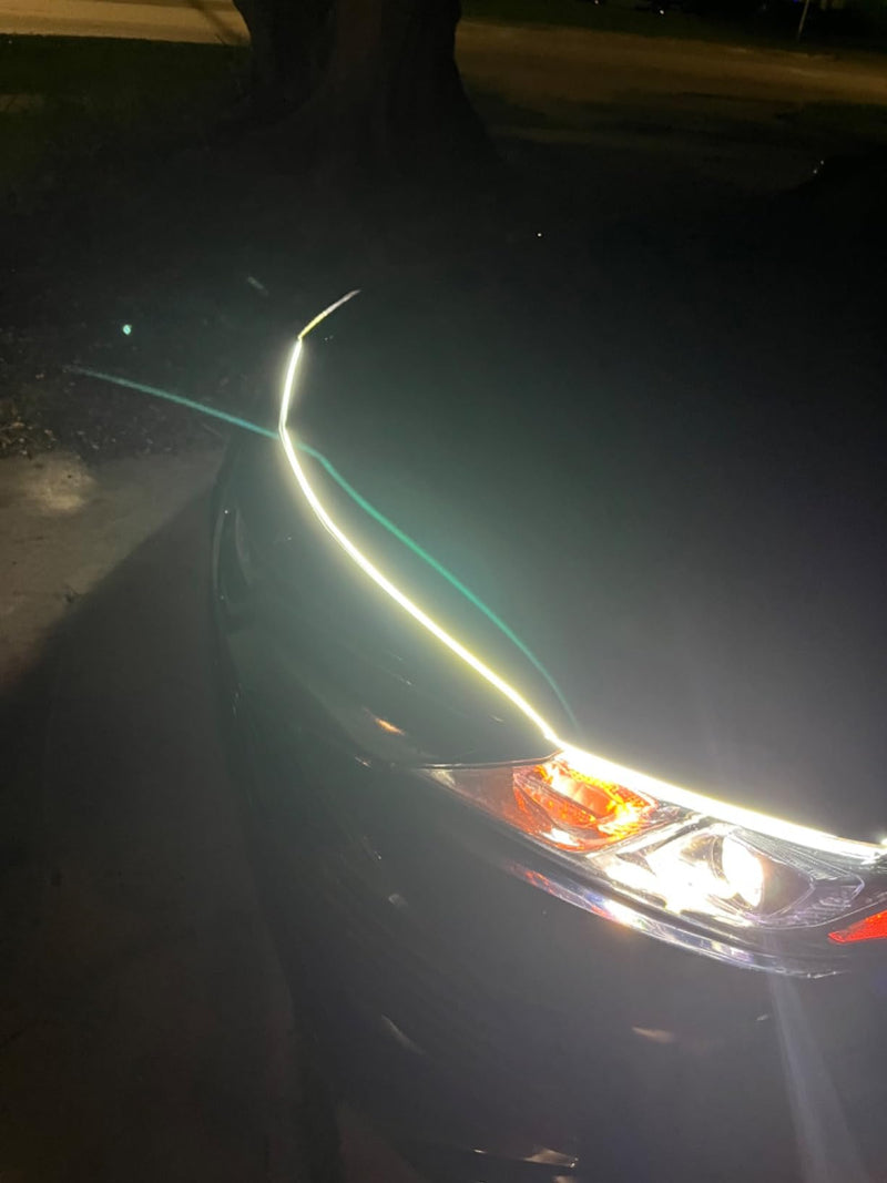 Whether you're cruising through the city or parked at a meet-up, your hood keeps glowing with clean, powerful LED light. It adds visibility, style, and a personal signature that makes your car unforgettable — no matter the time of day.