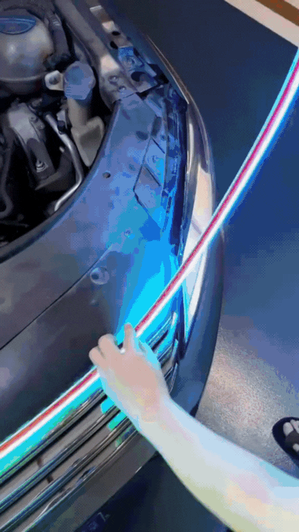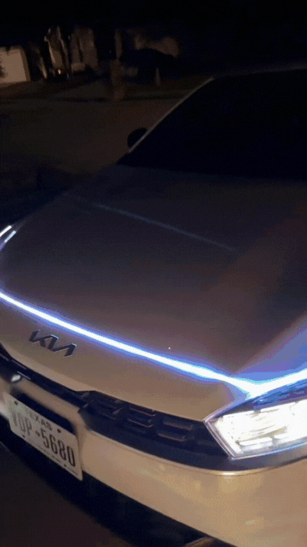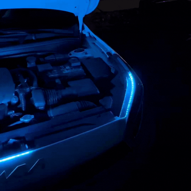 Peel, stick, and connect. The flexible strip conforms to your hood line and powers on instantly. A short video guide is included in your order confirmation.